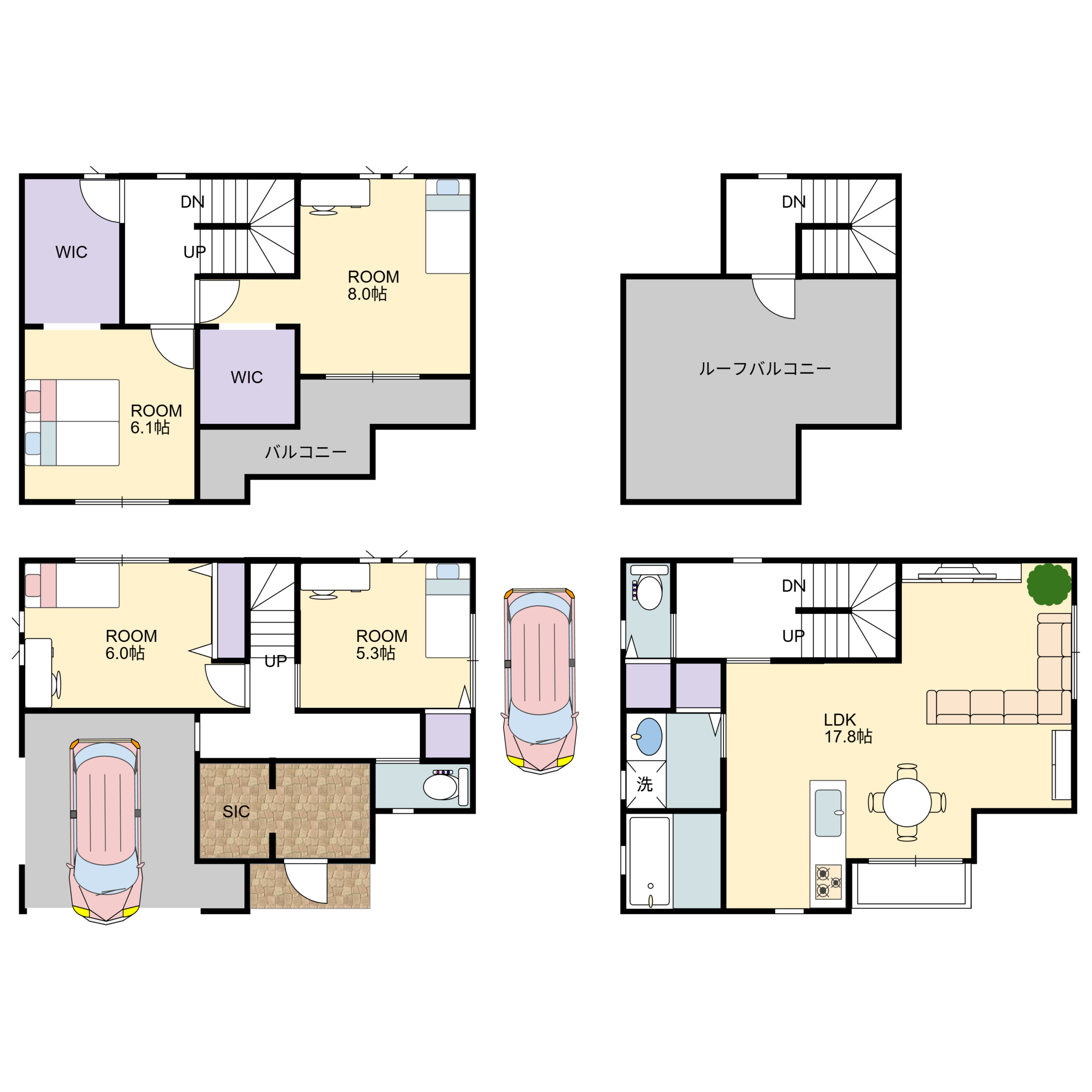 ☆広々LDK 17.8帖!! ☆スマートキーで楽々施錠 ☆ルーフバルコニー付き ☆宅配BOX付ポスト標準装備! ☆使いやすい4LDK ☆SIC×1、WIC×2 収納たっぷり ☆自動車2台駐車可能!!